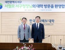 데일리연합 (SNSJTV) 김민제 기자 | 서철모 대전 서구청장이 지역 맞춤형 인력 양성을 위해 28일 한국폴리텍대학 대전캠퍼스를 찾았다. 서 청장은 지난 10월 대학 측과 체결한 업무협약의 후속 조치 차원에서 주요 교육시설을 점검하고, 전문 교육과정에 참여 중인 교육생들을 만나 격려했다. 이번 방문은 지난 10월 체결한 ‘지역 맞춤형 인재 양성 및 취업지원’ 협약의 추진 상황을 확인하고, 지역 산업 수요에 부합하는 기술 인력 양성 체계를 강화하기 위한 목적이다. 이날 캠퍼스 실습동과 교육장 등을 둘러보며 교육 프로그램 운영 현황을 보고받은 서 청장은 실습 과정에 참여하는 교육생들에게 응원의 메시지를 전하기도 했다. 서 청장은 “대학과 협력해 청년·중장년 등 전 계층을 대상으로 취업역량 강화 프로그램을 지속적으로 확대하겠다”며 “현장 수요에 맞춘 전문 기술 인력 양성이 지역산업의 경쟁력으로 이어질 것”이라고 말했다. 서구와 한국폴리텍대학은 협약에 따라 오는 12월 ‘찾아가는 한국폴리텍대학 교육훈련’ 1회차 프로그램을 운영한다. 첫 교육과정은 생성 AI·UV프린팅 융합 예술 콘텐츠 창작 과정으로,