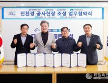 데일리연합 (SNSJTV) 임재현 기자 | 대전 유성구는 1일 유성구청 중회의실에서 대형 건축 공사장 시공사와 ‘친환경 공사 현장 조성 업무 협약’을 체결했다. 이번 협약은 고농도 미세먼지 발생 빈도가 높은 겨울철을 앞두고 공사장의 친환경 문화를 확산하고 ESG 경영을 실천하기 위해 마련됐으며, 현대건설(주)·(주)대우건설·㈜서해종합건설 등이 참여했다. 협약에 따라 공사장은 비산먼지와 소음 발생을 예방하기 위한 관련 규정을 준수하고, 폭염·폭설 등 재난 상황 발생 시 도로 살수·제설 작업을 지원한다. 또한, 친환경 건축 자재를 활용하고 사무실에서는 다회용기 사용을 실천하며, 유성구는 협약 내용이 이행될 수 있도록 행정·재정적 지원을 제공할 계획이다. 정용래 유성구청장은 “이번 협약을 통해 공사장 주변 환경 개선에 큰 힘이 될 것으로 기대한다”라며 “앞으로도 친환경 공사 문화 정착을 위해 지속적으로 협력하겠다”라고 말했다.