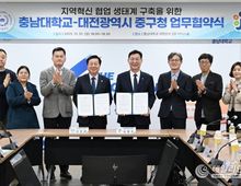 데일리연합 (SNSJTV) 김민제 기자 | 대전 중구는 지난 1일 충남대학교에서 지역혁신 생태계 조성을 위한 RISE(지역혁신 중심 대학지원체계) 구축 업무협약을 체결했다고 밝혔다. 협약식은 김제선 중구청장과 김정겸 충남대학교 총장을 비롯해 사업 관계자 등이 참석한 가운데 진행됐다. 이번 협약은 인구감소, 청년정착 문제, 신산업 기반 확대 등 주요 지역 현안에 중구청과 충남대학교가 공동 대응하기 위한 것으로, 지방정부와 지역거점대학이 상호 협력해 지역의 지속 가능한 성장을 도모하겠다는 의미를 담고 있다. 양 기관은 이번 협약을 통해 ▲지역인재 양성을 위한 지역문제 해결 프로그램 공동 개발 ▲지역 통합돌봄체계 활성화 프로그램 운영 ▲RISE 사업 기반 바이오헬스케어 분야 기업 지원 ▲지역 내 공영 부지·시설 공동활용 방안 검토 및 협력 분야 발굴 등에 함께 힘을 모을 계획이다. 특히 공동실무추진위원회를 구성해 실질적 협력이 이뤄질 수 있도록 체계적인 운영 기반도 마련한다. 중구는 이번 협약이 지역대학과 지방정부가 연계하는 새로운 협력 모델을 만들고, 이를 통해 청년 정주여건 개선과 지역경제 활력을