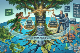 데일리연합 (SNSJTV) 박용준 기자 | 국제지속가능성기준위원회(ISSB)가 생물다양성 및 자연자본 공시를 의무 기준(Standard)이 아닌 비구속적 '실무지침서(Practice Statement)' 형태로 개발하기로 결정했다. 이는 기후 공시(S2) 도입만으로도 한계치에 다다른 기업들의 이행 부담을 고려한 고도의 전략적 후퇴이자, 파편화된 자연 관련 공시 체계를 TNFD(자연 관련 재무공시 태스크포스) 기반으로 통합하려는 실용주의적 선택으로 풀이된다. ISSB가 '의무' 대신 '지침'을 택한 이면에는 글로벌 공시 표준의 '수용성' 문제가 자리 잡고 있다. 현재 전 세계적으로 IFRS S1·S2 도입이 확산되는 단계에서 생물다양성이라는 고난도 지표까지 의무화할 경우, 기업들의 거센 반발과 함께 표준 자체의 동력이 상실될 수 있다는 우려가 작용했다. 특히 에마뉘엘 파베르 의장이 언급했듯, 이미 S1(일반 공시) 하에서 중요 정보 공시는 요구되고 있으므로, 실무지침서를 통해 '방법론'을 먼저 정립한 뒤 단계적으로 의무화하겠다는 ‘연착륙 전략’이다. 미국과 유럽은 이 사안을 두고 엇갈린 행보를 보이고 있다. 강력한 탄소국경조정제도(CBAM)와 기업지속가능성보고