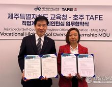 데일리연합 (SNSJTV) 김준 기자 | 제주특별자치도교육청은 5일 호주 시드니에서 호주 공립 직업교육기관(TAFE, Technical and Further Education) 및 시드니 한인회와 각각 직업계고 해외인턴십 사업 운영을 위한 업무협약(MOU) 을 체결했다고 밝혔다. 이번 협약은 제주 직업계고 학생들의 글로벌 현장학습을 확대하고 국제 직업훈련 협력 강화를 위해 추진된 것으로 이를 통해 해외 인턴십 참여 학생들의 현지 적응력과 안전관리 체계를 강화하고 지속가능한 글로벌 현장학습 기반과 국제직업교육 협력 네트워크를 구축한다. 호주 직업교육기관과의 업무협약을 통해 양 기관은 교사·학생 교류, 연수, 교육·학습지원 프로그램 개발, 학습자료 및 정보 교환, 콘퍼런스 및 학습활동 공동 추진 등 다양한 분야에서 협력하기로 했다. 시드니 한인회와의 업무협약은 제주 직업계고 해외 인턴십 프로그램이 원활하게 추진되고 성공적으로 운영될 수 있도록 참가 학생들의 현지 적응 지원 및 안전관리 강화를 중심으로 상호 협력관계를 구축하는 것을 목적으로 하고 있다. 특히 호주 공립 직업교육기관은 첨단 실습시설과 산