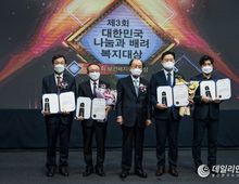 26일 복지TV가 주관한 ‘제3회 대한민국 나눔과 배려 복지대상’이 개최됐다. 복지대상은 아름다운 봉사 정신과 나눔 문화를 널리 알리고 지역사회 발전은 물론 대한민국 정체성을 확립하는 데 기여한 개인 또는 기관, 단체 등을 선정해 수여하는 상이다. 시상식 심사위원은 조정래 작가와 공동조직위원장 이수성 전 국무총리가 맡았고, 박병석 국회의장, 송영길 더불어민주당 당대표, 이준석 국민의힘 당대표, 권덕철 보건복지부장관 등이 축사를 진행했다. 이번 시상식에서 강원도는 3명이 수상하는 영예를 안았다. 지역발전부문 대상을 수상한 더불어민주당 송기헌 국회의원(강원 원주을·국회 법제사법위원회)은「부가가치세법 일부개정법률안」,「노인복지법 일부개정법률안」,「도시 및 주거환경정비법 일부개정법률안 / 소방기본법 일부개정법률안」,「고위공직자범죄수사처 설치 및 운영에 관한 법률 일부개정법률안」등을 대표발의하며 민생과 복지를 위한 다양한 입법활동을 인정받았다. 복지나눔부문 대상을 수상한 이대주 의원은 춘천시의회 복지환경위원회 소속으로 복지분야 시정에 대한 혜안과 통찰력이 뛰어나며, 시정 활동에 세심한 분석과 해석으로 날카로운 지적과 보다 효율적인 대안을 제시해왔다. 사회통합분야 국회