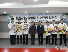 데일리연합 (SNSJTV) 이기삼 기자 | 철원군은 1월 12일 11시 30분 철원군청에서 2026년 신규 및 재계약 유도 및 태권도 실업팀 선수 입단식을 개최했다. 먼저, 유도팀 재계약 선수들은 2025 제106회 전국체육대회 금메달리스트인 –100kg 원종훈 선수, 동메달 리스트인 –90kg 이승수 선수와 각종 전국대회 1위에 빛나는 –60kg 이상민 선수와 재계약을 했다. 태권도팀은 2025 제106회 전국체육대회 은메달리스트인 –80kg 서강연 선수를 신규영입했고, 전국태권도대회 수상자들인 +87kg급 김민서, -80kg급 조재연 선수와 재계약을 체결했다. 우수 선수들을 보강한 철원군 유도 및 태권도 실업팀은 선수들의 경기력 향상과 좋은 성적을 내어 철원군 체육발전 및 홍보에 큰 기여를 할 것으로 기대하고 있다. 이현종 철원군수는 “우리 철원군 실업팀에 입단한 것을 진심으로 환영한다. 2025년 좋은 성적을 거두어 준 만큼, 붉은 말의 해인 2026년도에도 영광의 한 해로 만들 수 있게 많은 지원과 관심을 보내겠다”고 전했다.