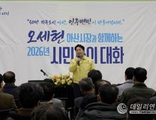 데일리연합 (SNSJTV) 김민제 기자 | 아산시는 26일 온양2동 행정복지센터에서 ‘2026 시민과의 대화’를 열고, 원도심 생활 여건과 주요 현안에 대한 주민 의견을 청취했다. 이날 ‘온양2동 시민과의 대화’는 오세현 아산시장을 비롯해 아산시의회 홍성표 의장, 맹의석 부의장, 충남도의회 안장헌 의원 등 온양2동 기관·단체장과 주민 80여 명이 참석한 가운데 진행됐다. 오세현 시장은 간담회에 앞서 “온양2동은 아산의 역사와 일상이 축적된 원도심으로, 도시의 얼굴이자 변화의 출발점”이라면서 “그동안 노후화와 온천산업 침체로 어려움을 겪어왔지만, 최근 ‘노후주거지 정비 지원사업’ 선정을 계기로 주거·교통·생활 인프라가 함께 개선되는 전환점을 맞이했다”고 말했다. 이어 “대규모 개발 못지않게 중요한 것은 주민 생활과 직결된 문제를 현장에서 직접 듣고 하나씩 해결해 나가는 일”이라며 “오늘 이 자리가 온양2동의 현재를 점검하고, 주민 여러분의 목소리를 시정에 충실히 반영하는 계기가 되길 바란다”고 덧붙였다. 이날 주민들은 △온양온천역지구 노후주거지 정비사업 추진 현황 △도시침수 대응을 위한 우수·하수관