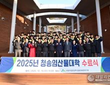데일리연합 (SNSJTV) 김민제 기자 | 청송군은 지난 10일 산림조합중앙회 임업인종합연수원 세미나실에서 제9회 청송임산물대학의 수료식을 가졌다. 이날 수료식은 윤경희 청송군수, 신효광 도의원, 심상휴 군의장 및 군의원, 수료생 40명 등 60여 명이 참석한 가운데 1년간 학사운영 추진 상황을 보고했다. 임업전문교육기관인 임업인종합연수원에서 위탁 교육하는 청송임산물대학은 2017년을 시작으로 2025년까지 490명의 수료생을 배출했으며, 임업인들에게 꾸준한 인기를 얻고 있다. 2025년에는 4월 입학식을 시작으로 이번 수료식까지 9개월간 총 100시간을 교육생 40명을 대상으로 임산물재배기술을 이론교육과 현장실습을 병행했고, 그 중 브랜드디자인 분야와 마케팅 분야는 교육생들에게 좋은 반응을 얻었다. 청송군 관계자는 “임산물대학을 통해 임업관련 기술을 향상시켜 임가소득 증대를 도모하고, 임산물 브랜드 마케팅교육을 통해 6차산업으로 이어져 더 큰 가치를 창출할 것으로 기대한다.”고 말했다.