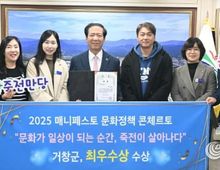 데일리연합 (SNSJTV) 김민제 기자 | 거창군은 강원특별자치도 원주시 상지대학교에서 개최한 ‘2025 전국 기초단체장 매니페스토 문화정책 콘체르토(Concerto)’ 대회에서 문화기반 도시활력분야 ‘최우수상’을 수상했다고 26일 밝혔다. 올해 처음 시행된 ‘2025 전국 기초단체장 매니페스토 문화정책 콘체르토(Concerto)’ 대회는 (사)한국매니페스토실천본부와 강원특별자치도경제진흥원이 공동 주최했으며, 문화자치, 문화민주주의 실현, 도시활력 활성화를 위한 우수 문화정책의 공유·학습·확산의 장을 제공함으로써 지방정부의 문화 역량 강화와 새로운 문화정책 방향을 제시하기 위한 목적으로 개최됐다. 경진대회의 주제는 ‘문화와 도시, 그리고 회복력’으로, △문화 거버넌스 구현 △문화 활동 활성화 △문화 기반 도시 활력(경제 활성화) 총 3개 분야에 전국 84개 기초자치단체가 참여해 총 160개 우수사례가 접수됐다. 1차 서류심사를 거쳐 열린 본선 대회에는 86개 사례의 2차 발표심사가 진행됐으며, 거창군은 문화기반 도시활력분야 분야의 우수사례가 최종 본선에 올라 7개 군부 중 최우수상을 수상했다.