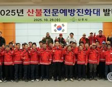 데일리연합 (SNSJTV) 김민제 기자 | 전라남도 나주시가 가을철 산불조심기간을 맞아 산불 예방과 신속한 초동 진화를 위한 ‘산불전문예방진화대’ 본격 운영에 나선다. 나주시는 지난 29일 나주시민회관에서 산불전문예방진화대원 56명이 참석한 가운데 발대식을 열고 오는 11월 1일부터 12월 15일까지 산불대책본부를 가동하며 가을철 산불 대응체계에 돌입했다고 31일 밝혔다. 산불전문예방진화대는 산불 발생 시 신속한 현장 출동과 진화를 비롯해 인화물질 제거, 산불 예방 캠페인, 초동 진화 등 다방면의 임무를 한다. 진화대원은 시 본청 소속 2개 조로 편성해 주요 산림지역을 순찰하고 읍면 단위 대원은 각 지역에 배치돼 산림 인접 지역의 불법 소각 행위 단속과 감시활동을 펼친다. 또한 나주시는 인근 화순군, 영암군과 공동 운영 중인 산불 진화 헬기를 활용해 산불 발생 시 신속한 현장 대응과 진화로 피해 최소화에 나설 방침이다. 윤병태 나주시장은 발대식에서 “상반기 전라남도 산불예방 대응 평가에서 나주시가 최우수상을 받은 것은 진화대원의 헌신과 노력 덕분”이라며 감사의 뜻을 밝혔다.