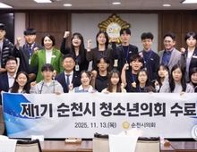 데일리연합 (SNSJTV) 장우혁 기자 | 순천시의회는 지난 13일 순천시의회 본회의장에서“제1기 순천시 청소년의회 제2차 본회의 및 수료식”을 개최하고, 제1기 청소년의회 활동을 성공적으로 마무리했다. 지난 7월 공개모집을 거쳐 총 21명의 청소년의원으로 구성된 제1기 청소년의회는 9월 발대식을 시작으로 문화경제위원회(10명)와 도시건설위원회(11명), 2개의 상임위원회가 상임위원회 활동, 국회 방문 등 다양한 의정 활동을 진행해 왔다. 어제 열린 제2차 본회의에서는 상임위원회 활동을 통해 도출된 정책제안을 본회의 안건으로 상정해 토론과 표결을 직접 진행하는 등 실제 시의회의 의사운영 절차를 그대로 체험했다. 특히 이 과정에서 청소년의원들은 시정 전반에 대한 관심과 문제의식을 바탕으로 ▲학원에 다니지 않아도 모두가 함께 배우는 학교(신흥중1 이슬) ▲습지를 파괴하는 도시를 생태수도로 부를 수 있는가(금당고1 정우균) ▲가로등 개선을 통한 안전한 여성안심귀가길 조성(효천고2 안준성, 순천고1 김민수)에 대한 3건의 자유발언을 진행했다. 이어 ▲횡단보도와 버스정류장 등 편의시설 확충(향림중1 박찬현