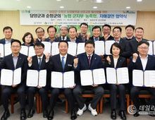 데일리연합 (SNSJTV) 김민제 기자 | 담양-순창군 농축협이 19일 담양군청 송강정실에서 자매결연을 맺고 상생협력을 담은 협약서에 공동 서명했다. 이날 협약식에서는 정철원 담양군수, 최영일 순창군수를 비롯해 김은경 NH농협 전남지역 경영부본부장, 이창완 전북지역 경영부본부장, 이광재 담양군지부장, 신종철 순창군지부장과 지역농축협장 등 20여 명이 참석했다. 이번 협약을 통해 양 농협 군지부와 농축협은 상호 유기적 협력체계를 구축하고 동반성장을 위한 사업 연계, 인적·물적 자원 교류, 각종 협력사업 추진 등을 약속했다. 전남 담양과 전북 순창군은 행정구역은 다르지만 지리적으로 맞닿은 인접 지역으로, 2003년부터 ‘구곡순담(구례·곡성·순창·담양) 장수벨트행정협의회’를 중심으로 다양한 공동 사업을 펼쳐왔다. 또한 담양군문화재단과 순창발효관광재단 간 업무협약을 통해 활발한 교류를 이어오며 끈끈한 협력 관계를 유지해 왔다. 특히 2024년 4월 29일에는 담양호 저수량 확대를 위해 순창군 구림면 도수터널 차수벽을 철거하고 용수를 공급하는 협력사업을 추진해 가뭄 극복에 힘을 모았다. &nb