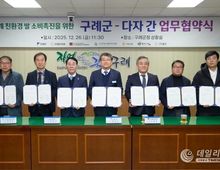 데일리연합 (SNSJTV) 김민제 기자 | 구례군은 친환경 농업의 가치를 확산하고 쌀 소비 기반을 강화하기 위해 공공·금융·농협·민간이 참여하는 다자간 업무협약을 지난 12월 26일 군청 상황실에서 체결했다. 이날 협약식에는 김순호 구례군수를 비롯해 ▲구례군의회 ▲탄소중립흙살리기운동본부 ▲한국농식품벤처투자협회 ▲구례농협 ▲(주)풀과나무 ▲그린올린(주) 등 친환경 농업과 유통·소비 촉진에 뜻을 함께하는 기관과 단체가 참여했다. 이번 협약을 통해 참여기관들은 친환경 쌀의 안정적인 생산과 유통, 소비 확대를 위한 협력체계를 구축하고, 지속 가능한 지역 농업 발전을 위해 상호 협력해 나가기로 했다. 협약의 주요 내용은 ▲친환경 쌀의 안정적 생산·유통 및 소비 기반 구축 ▲공공부문 쌀 소비 확대와 민간 소비처 발굴을 통한 판로 다각화 ▲친환경 쌀 소비 촉진을 위한 홍보 및 교육 협력을 통한 소비자 인식 제고 ▲농식품 분야의 정책자금 지원과 금융 컨설팅 연계를 통한 지속 가능한 쌀 생산 기반 강화 등이다. 특히, 구례군은 공공 급식과 공공기관을 중심으로 친환경 쌀 소비를 확대하고, 민간 유통망과 기업·단체를