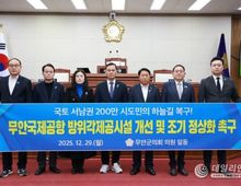 데일리연합 (SNSJTV) 장우혁 기자 | 무안군의회가 작년 12월 29일 발생한 여객기 사고로 폐쇄된 지 1년을 맞은 무안국제공항의 조속한 정상화를 정부에 강력히 촉구하고 나섰다. 군의회는 29일 성명서를 통해, “사고 후 1년간 공항이 방치되면서 서남권 200만 주민의 하늘길이 막히고, 지역 경제가 회복 불능의 위기에 처했다”며 정부의 책임 있는 자세를 요구했다. 특히 군의회는 사고 피해를 키운 핵심 원인으로 지목된 ‘방위각제공시설’이 애초에 관련 법규를 위반해 설치된 ‘위법 시설물’이었다는 점을 강하게 비판했다. 최근 국민권익위원회가 이 같은 사실을 공적으로 확인함에 따라 정부의 사고조사와 후속 대응이 총체적으로 부실했음이 드러났다고 지적했다. 또한, 군의회는“사고 이후에도 종단안전구역 연장, 방위각제공시설 구조 개선 등 안전을 위한 핵심 후속 조치가 제때 이뤄지지 않으면서 정부의 정상화 의지마저 의심케 하고 있다”고 꼬집었다. 현재 국토교통부는 무안공항을 포함한 7개 공항의 관련 시설 개선 사업을 추진 하면서도, 정작 사고가 난 무안공항에 대한 조치가 늦어지는 것은 납득하기 어
