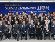 데일리연합 (SNSJTV) 장우혁 기자 | 전라남도의회는 1월 2일, 병오년 새해를 맞아 국립5·18민주묘지를 참배하며 2026년 첫 공식 의정활동을 시작했다. 이날 참배에는 제12대 전남도의원들이 참석해 민주주의 수호를 위해 헌신한 오월 영령들의 숭고한 뜻을 기리고, 민주주의의 가치를 되새기는 시간을 가졌다. 김태균 의장은 방명록에 “민본의정 2026년, 새로운 변화와 희망으로 함께하겠습니다.”라고 남기며 “민주주의의 가치 위에서 도민의 삶을 지켜내는 의회 본연의 역할을 다하겠다.”고 밝혔다. 김 의장은 이어 “지역 현안과 민생 전반에 해결해야 할 과제가 여전히 많은 만큼, 전남도의회는 현장의 목소리를 바탕으로 실질적인 대안을 마련하는 데 집중하겠다.”고 강조했다. 오후에는 도의회 초의실에서 김태균 의장을 비롯해 박문옥 운영위원장과 사무처 전 직원이 참석한 가운데 2026년 시무식을 갖고, 민본의정의 실천을 위한 의정활동 역량 제고와 전문성 강화를 다짐했다. 전라남도의회는 앞으로도 책임 있는 의정활동을 통해 민생 안정과 지역경제 회복, 미래 세대를 위한 지속 가능한 정책 실현에 역량