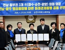 데일리연합 (SNSJTV) 김민제 기자 | 김영록 전라남도지사는 27일 “전남과 광주, 지역 정치권이 대한민국 광역통합 1호 특별시를 향한 역사적 대합의를 이뤄 전남광주특별시를 향한 여정을 시작한다”고 밝혔다. 김영록 지사는 이날 행정통합 명칭과 소재지 합의 관련 성명서를 통해 전라남도와 광주시를 넘어, 하나로 뭉친 ‘전남광주특별시’를 향한 대장정의 시작을 알렸다. 이날 국회에서 열린 광주·전남 통합특별법 검토 4차 간담회에선 행정통합 특별시 명칭을 ‘전남광주특별시’, 약칭을 ‘광주특별시’로 정하고, 주청사 지정 없이 전남 동부청사, 전남 무안청사, 광주청사, 세 곳으로 분산 운영하되, 이 순서대로 명기하기로 했다. 김영록 지사는 “논의 과정에서 약칭을 광주특별시로 하는 것은 자칫 주사무소를 광주로 두겠다는 신호로 비칠 수 있다는 우려를 제기했다”며 “그러나 오월정신의 숭고한 역사를 전남이 온전히 품겠다는 대승적 결단으로, 이를 포용적으로 수용했다”고 말했다. 민주화의 성지 ‘광주’라는 이름을 320만 시도민 모두의 자산으로 승화시켜 대한민국 광역통합 1호 특별시의 품격을 완성하겠다는 각오다. 특