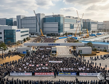 데일리연합 (SNSJTV) 송동섭 기자 | 타이밍이 잔인하다. 삼성전자가 올해 1분기 영업이익 57조 2000억 원이라는 제조업 역사에 유례없는 수치를 찍은 바로 그 시점에, 창사 이래 최대 규모의 총파업 위기가 덮쳐왔다. 세계 반도체 매출이 사상 처음으로 1조 달러 돌파를 목전에 둔 슈퍼사이클의 절정, 그 한가운데에서 삼성전자 초기업노조 소속 조합원 3만 7000여 명이 23일 경기 평택 반도체 사업장 앞에 집결하며 '영업이익의 15%, 상한 없는 성과급 제도화'를 외쳤다. 노조가 예상하는 올해 영업이익 270조 원의 15%를 대입하면 40조 5000억 원, 1인당 평균 6억 원에 달하는 성과급 요구다. 노조는 다음 달 21일부터 18일간 5개 사업장 반도체 라인을 전면 정지하겠다고 예고했고, 사측은 수원지방법원에 '위법 쟁의행위 금지 가처분'을 신청했다. 한국 반도체 산업 최고의 호황기가 최악의 내홍으로 뒤덮이고 있다. 이 갈등의 배경에는 삼성과 SK하이닉스 사이의 보상 격차가 자리한다. SK하이닉스는 영업이익의 10%를 성과급으로 상한 없이 지급하기로 고정해두고 있으며, 올해 SK하이닉스 직원들이 받을 성과급은 평균 7억 원, 최대 10억 원에 이를 것
