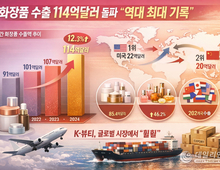 데일리연합 (SNSJTV) 박해리 기자 | 우리나라 화장품 수출이 작년 역대 최대 실적을 기록하며 글로벌 시장에서 존재감을 다시 한 번 입증했다. 식품의약품안전처는 지난해 12월 말 기준 국내 화장품 수출액이 전년 대비 12.3% 증가한 114억달러로 잠정 집계됐다고 9일 밝혔다. 이는 약 16조6천억원 규모로, 연간 기준 사상 최고치다. 월별 수출 실적은 연중 내내 해당 월 기준 역대 최고 기록을 갈아치웠다. 특히 9월에는 월간 수출액이 사상 처음으로 11억달러를 넘기며 11.5억달러를 기록했고, 전년 동월 대비 증가율은 26%에 달했다. 하반기(7~12월) 수출액 역시 59억달러로 전년 동기 대비 9.3% 증가하며 반기 기준 최대 실적을 썼다. 국가별로는 미국이 22억달러로 가장 많은 수출액을 기록하며 처음으로 1위에 올랐다. 이어 중국 20억달러, 일본 11억달러 순이었으며 상위 10개국이 전체 수출의 70.7%를 차지했다. 아랍에미리트와 폴란드는 수출 증가세가 두드러지며 각각 8위와 9위에 이름을 올렸다. 미국은 2021년 처음 2위에 오른 이후 꾸준한 성장세를 이어왔으며, 2023년 10억달러를 돌파한 데 이어 지난해에는 최대 수출국으로 올라섰다.