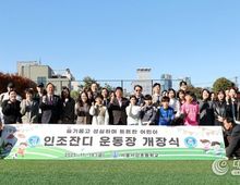 데일리연합 (SNSJTV) 김민제 기자 | 박강수 마포구청장은 11월 14일 오전, ‘꿈을 담는 녹색 운동장’ 인조잔디 운동장 개장식이 열린 서울서강초등학교(교장 박왕준)를 찾았다. 이번 개장식에는 학교와 서울서부교육청 관계자뿐만 아니라 축구부 학생과 학부모들까지 참여해 인조잔디 운동장의 탄생을 축하했다. 이날 박강수 마포구청장은 개회식에 참석해 축사를 전하고 테이프 커팅식에 참여했다. 이후 축구부 학생들과 함께 시축 행사를 하며 뜻깊은 시간을 공유했다. 박강수 마포구청장은 “이번 인조잔디 운동장 조성은 서강초등학교와 교육청, 학부모님, 그리고 지역사회가 함께 이루어낸 소중한 결실”이라며 “쾌적하고 안전한 운동장에서 우리 아이들이 마음껏 뛰놀고, 건강한 몸과 마음을 키울 수 있게 되어 매우 기쁘다”라고 말했다. 이어 “‘교육특별구 마포’로의 도약을 선포한 마포구는 성장과 지역사회 협력, 안전과 미래양성, 그리고 상생교육의 5대 핵심 목표를 기반으로 진정한 교육도시로 거듭나겠다”라고 강조했다. 한편, 마포구는 서강초등학교와 ‘미래 축구 꿈나무 발굴·육성 협약’을 맺고 아낌없는 지원을 이