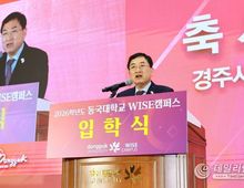 데일리연합 (SNSJTV) 장우혁 기자 | 주낙영 경주시장이 동국대학교 WISE캠퍼스 입학식에 참석해 신입생들의 힘찬 출발을 응원했다. 경주시는 주낙영 시장이 지난 20일 동국대학교 WISE캠퍼스 입학식에 참석해 신입생들을 격려했다고 22일 밝혔다. 이날 입학식에는 돈관 스님과 윤재웅 동국대 서울캠퍼스 총장, 류완하 WISE캠퍼스 총장을 비롯해 총동창회 관계자, 신입생·학부모 등 2,000여 명이 참석했다. 행사는 개식 선언과 국민의례를 시작으로 입학 허가 선언 및 장학증서 수여, 총장 식사, 이사장 치사, 내빈 축사, 홍보영상 상영, 교가 제창 등의 순으로 진행됐다. 주낙영 시장은 축사에서 “오늘 여러분은 120년의 역사를 지닌 동국대학교의 새 가족이 됐으며, 동시에 신라 천년의 숨결이 살아 숨 쉬는 경주의 새로운 가족이 됐다”고 말했다. 이어 “경주는 전통 위에 새로운 미래를 만들어가는 도시”라며 “SMR 국가산업단지 조성과 e-모빌리티 산업 등 첨단 산업 기반을 확충하고, 관광·문화·국제회의 도시 기반을 강화해 세계와 연결되는 미래 경쟁력을 더해가고 있다”고 강조했다.