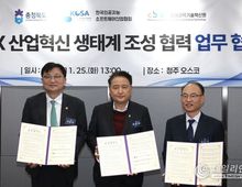 데일리연합 (SNSJTV) 임재현 기자 | 충북도는 25일 청주오스코에서 열린 ‘AI 페스타 2025’ 개막식에 앞서, 한국인공지능·소프트웨어산업협회(KOSA), 충북과학기술혁신원과 함께 ‘충북 AX(AI 전환) 산업 혁신 생태계 조성’을 위한 업무협약(MOU)을 체결했다고 밝혔다. 이번 협약은 AI·SW 공급기업과 지역 수요기업 간 연계·협력 체계를 구축하고, 충북 산업현장의 AI 전환을 가속화하기 위한 기반 마련을 위해 추진됐다. 협약 기관들은 ▲지역 소부장 산업의 AX 촉진 ▲KOSA 소속 공급기업과 충북 수요기업 간 네트워크 구축 ▲AI·SW 전문인력양성 협력 등 산업 전반의 혁신 생태계 활성화를 위해 기관 간 협력과 정보 공유, 상호 지원 체계 구축에 합의했다. 업무협약 직후 열린 ‘AI 페스타 2025’ 개막식에서는 300여 명이 참석하며 성황을 이루었고, 유망기술 기업, 전문가, 도민이 함께 AI 기반 산업 전환 전략과 글로벌 혁신 동향을 공유하며 행사의 본격적인 시작을 알렸다. 특히, KOSA, 한양대학교, 중국 산동성 대학, 핀란드 IQM, 미국 블레이즈 등 국내외 주요 연사들