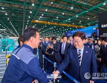 데일리연합 (SNSJTV) 장우혁 기자 | 이재명 대통령은 25일 오후 한국항공우주산업(KAI)에서 열린 KF-21 양산 1호기 출고식에 이어 고정익 생산 현장을 시찰했다. 고정익 생산 현장인 고정익동은 축구장 3개 크기에 해당하는 2만1천㎡ 규모의 공간을 갖췄으며, KF-21을 비롯해 FA-50, T-50 등을 생산하고 있다. 김종출 한국항공우주산업 대표이사는 "연간 50대 이상 생산 가능한 제조 능력을 구축하고 있다"며 "수출 물량 증가에 대비해 지속적으로 투자를 이어갈 계획"이라고 밝혔다. 한국항공우주산업은 올해 KF-21 8대와 FA-50 19대 등 총 27대를 납품할 예정이며, 내년과 내후년에는 각각 31대와 47대를 납품할 계획이다. 고정익동에는 수출 물량이 공정에 따라 일렬로 배치돼 있었다. 이재명 대통령은 말레이시아(FA-50 13대), 폴란드(FA-50 14대), 인도네시아(T-50 4대) 등과 체결한 수출 계약 물량을 정상적으로 조립하고 있는 상황을 확인했다. 이어 이재명 대통령은 한국형 전투기의 핵심인 최첨단 에이사(AESA) 레이다를 포함한 각종 항공전자장비의 높은 독자 개발 수준에 대해 설명을 들었다. 또한 한국형 전투기의 신속한 생산
