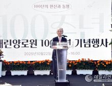 데일리연합 (SNSJTV) 김준 기자 | 김제시는 용지면 소재 애린양로원(원장 한종욱)이 개원 100주년을 맞아 ‘100년의 헌신과 동행’이라는 주제로 22일 기념행사를 개최했다고 밝혔다. 이날 행사는 사회복지 관계자, 지역주민, 후원자 및 자원봉사자 등 약 300여 명이 참석한 가운데 애린양로원 야외공연장에서 진행됐다. 식전공연, 개회선언에 이어 사회복지법인 애린원 한규택 대표이사의 기념사를 시작으로 각계 인사의 축사가 이어졌다. 특히 애린양로원의 어르신 복지향상과 기관 발전에 기여한 단체 및 직원 등을 대상으로 전북특별자치도지사 표창, 김제시장 표창 등 총 8개의 수상이 이뤄져 기쁨의 영광을 누렸다. 한종욱 원장은 “오늘의 영광은 지난 100년간 함께해주신 모든분들의 헌신 덕분”이라며 “앞으로도 어르신들의 품격 있는 삶과 행복을 위해 한결같은 마음으로 노력하겠다”고 밝혔다. 정성주 김제시장은 “김제의 자랑스러운 애린양로원이 창립 100주년을 맞이하게 된 것을 진심으로 축하드린다.”며, “앞으로의 100년도 지역사회와 함께 숨 쉬며, 든든한 복지의 중심으로 우뚝 서기를 기대한다.”고 전했다.