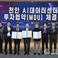 데일리연합 (SNSJTV) 김민제 기자 | 국내외 기업 투자 유치를 최우선 과제로 추진 중인 충남도가 1조 2000억 원 규모로 올해 투자 유치 첫 포문을 열었다. 김태흠 지사는 29일 도청 대회의실에서 김용성 ㈜금강 회장, 김석필 천안시장 권한대행(부시장)과 투자협약을 체결했다. 협약에 따르면, 금강은 2029년까지 1조 2000억 원을 투자해 천안시 직산읍 군서리 일원 10만 2642㎡의 부지에 인공지능(AI) 데이터센터를 건립한다. 천안 AI 데이터센터는 80㎿ 규모로, 금강은 이미 부지를 확보했으며, 한전과 80㎿ 규모 전기 사용 계약도 완료했다. 천안 AI 데이터센터 자금 운용은 파인앤파트너스자산운용주식회사가 맡기로 했다. 천안 AI 데이터센터 조성 시 신규 고용 인원은 200명으로, 지역 내에서 우선 채용할 예정이다. 금강은 또 지역 생산 농수축산물 소비 촉진에도 협력하기로 했다. 도는 천안 AI 데이터센터가 본격 가동하면 연간 200억 원에 달하는 지역경제 유발 효과가 있을 것으로 기대하고 있다. 도는 또 이번 AI 데이터센터 유치가