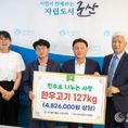 데일리연합 (SNSJTV) 김민제 기자 | (사)전국한우협회 군산시지부가 지난 30일, 추석 명절을 맞아 군산시 관내 사회복지시설·단체 등 어려운 이웃에게 한우 127kg(490만 원 상당)을 기탁했다. 이번 후원된 한우는 군산시 푸드뱅크를 통해 다양한 사회복지시설과 단체에 전달되어, 취약계층의 명절 식탁을 더욱 풍성하게 채워줄 예정이다. 기탁식에 참석한 배일호 지부장은 “한우협회 회원들의 마음을 모아 마련한 한우가 지역의 어려운 이웃들에게 잘 전달되길 바란다.”라며 “앞으로도 꾸준한 나눔을 통해 지역사회와 함께하는 한우협회가 되겠다.”라고 말했다. 강임준 군산시장은 “올해도 명절을 맞아 소외된 이웃을 위해 정성을 모아주셔서 감사드린다.”라며 “이번 기탁이 어려운 이웃에게 큰 위로가 되기를 바라며, 모두가 따뜻하고 풍성한 추석을 보내길 바란다.”라고 전했다. 한편, (사)전국한우협회 군산시지부는 현재 78 농가가 회원으로 활동하고 있으며, 한우산업 발전과 회원 농가 권익 보호뿐 아니라 지역사회 나눔 확산을 위해 지속적으로 노력하고 있다.