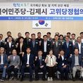 데일리연합 (SNSJTV) 김민제 기자 | 김제시는 더불어민주당 김제지역위원회와 지난 27일 김제시청 3층 대회의실에서 고위당정협의회를 개최했다고 밝혔다. 이번 협의회는 새정부 국정운영 5개년 계획(‘25.8.13.)과 연계한 국가예산 확보 전략 및 새만금 제2산단 조성에 따른 심포배수지 신설, 9월 초 집중호우에 따른 침수 피해 대응 방안 등에 대해 논의하기 위해 마련됐다. 이원택 국회의원, 정성주 김제시장, 서백현 김제시의장과 시의원, 나인권·황영석 도의원 등 총 40여 명이 참석하여 김제시 전반에 걸친 주요 과제에 대한 의견을 교환했다. 시는 오는 10월부터 본격적인 국회 대응 단계에 돌입함에 따라 ’4년 연속 국가예산 1조원 확보‘를 목표로 김제시 중점사업이 추가 반영될 수 있도록 당 차원의 전폭적인 지원을 당부했으며, 2025년 12월 새만금 기본계획(MP) 변경 결정을 앞두고 심포 배수지 신설 반영 등 새만금 지역 현안에 대해 보고하고 지역정치권에서 한목소리를 내달라고 촉구했다. 또한, 지난 7일 집중호우에 따른 주택 침수 피해 등에 대해서는 피해 현장 방문 및 주민 의견 청취를 통한