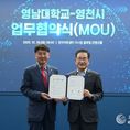 데일리연합 (SNSJTV) 김민제 기자 | 영천시는 28일 영남대학교 천마아트센터 이시원 글로벌컨벤션홀에서 영남대학교와 지역 발전과 혁신 생태계 조성을 위한 상호 협력 업무협약(MOU)을 체결했다. 이번 협약은 양 기관이 자원 공유와 프로그램 공동 운영 등 상호 교류와 협력에 필요한 사항을 합의한 것이다. 주요 내용으로는 ▲경북 RISE 사업 공동 대응 ▲AI 등 신산업 인력양성 ▲문화·인문 콘텐츠 개발 ▲국가 공모사업 공동 참여 ▲공동 학술행사 개최 및 인적 교류 활성화 등으로, 지역사회와 대학이 함께 성장할 수 있는 협력 기반을 마련했다. 협약식 이후 진행된 ‘YU프론티어 포럼’에서는 최기문 영천시장이 ‘지방소멸시대, 변화와 혁신으로 영천의 미래를 디자인한다’를 주제로 강연을 펼쳤으며, 대학의 우수한 연구 역량과 지역 산업을 연결해 지속 가능한 혁신 생태계를 조성하는 것이 지역 발전의 핵심임을 강조했다. 최기문 시장은 “이번 협약을 계기로 지역과 대학이 긴밀히 협력해 미래 성장 동력을 발굴하고, 지속 가능한 발전 기반을 마련하겠다”며, “앞으로도 대학과 지역사회가 함께 성장할 수 있는 다양한