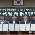 데일리연합 (SNSJTV) 김민제 기자 | 홍성군은 29일, 국립식량과학원, KT(케이티), 홍동농협과 함께 저탄소 농업기술 보급 활성화를 위한 4자간 업무협약(MOU)을 체결했다고 밝혔다. 군청 회의실에서 열린 협약식에는 이용록 홍성군수, 주정산 홍동농협 조합장, 국립식량과학원 곽도연 원장, KT 충남·충북고객본부 송영태 본부장 등 19명이 참석했다. 이번 협약에 따라 홍성군은 국립식량과학원이 개발한 저탄소 농업기술의 보급과 현장 지도를 담당하고, KT는 계측 데이터의 안정적 운영을 위한 통신 인프라를 지원하며, 홍동농협은 작목반 교육과 생산 관리 등 현장 적용에 중점을 두게 된다. 현재 저탄소 농산물 인증을 위해 필요한 ‘논물 관리’의 증빙은 농민이 수위를 직접 촬영해 업로드해야 해 고령농가의 참여에 어려움이 있었고, 증빙의 정확성도 낮다는 지적이 있었다. 이에 홍성군은 지난 6월 국립식량과학원·홍동농협과 협력해 홍동면 17개 대표 필지에 논물 계측기를 설치하고 현장 실증을 추진해왔으며, 이번 협약은 이러한 노력을 기반으로 저탄소 농업기술의 지속적 확산을 위해 마련됐다. 이용록 홍