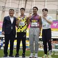 데일리연합 (SNSJTV) 김민제 기자 | 예천군 육상 직장운동경기부 나마디 조엘 진 선수가 제106회 전국체전에서 ‘스프린터 더블’(100m, 200m 동시 우승)에 이어 400m 계주에서도 금메달을 획득하며 3관왕을 달성했다. 대한민국의 육상 단거리 기대주 나마디 조엘 진 선수는 19일, 100m 10초 35로 금메달을 획득했으며, 다음날 20일에는 200m에서 현역 최강자 고승환(광주광역시청) 선수를 제치고 금메달을 획득한 데 이어 21일, 400m 계주에서도 금메달을 획득하여 대한민국 남자 단거리 최강자임을 다시 한번 확인했다. 앞서 조엘 진은 지난 9월 27일 홍콩에서 열린 제2회 동아시아 20세 이하(U-20)육상선수권대회 100m 예선에서 10초 26에 결승선을 통과하며, 자신의 종전 최고 기록(10초 30)을 0.04초 단축하는 등 이번 대회를 위해 철저히 준비를 해왔다. 조엘 진 선수는 “지난 시즌 내내 제 장점을 극대화하고 단점을 보완하는 훈련을 계속해왔던 것이 이번 전국체전에서 좋은 결과로 이어진 것 같다”며, “초반 스타트에서 뒤처지지 않으면서, 후반 가속력을 살릴 수 있었던 것이 3관왕