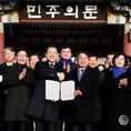 데일리연합 (SNSJTV) 김민제 기자 | 병오년 새해, 광주시와 전남도가 대한민국 민주화의 상징인 국립5·18민주묘지 오월영령 앞에서 광주‧전남 대부흥의 새 역사를 열어가기 위한 행정통합을 즉각 추진하기로 공동 선언했다. 강기정 광주광역시장과 김영록 전라남도지사는 2일 국립5‧18민주묘지에서 합동참배를 마친 뒤 민주의문 앞에서 광주‧전남을 하나로 묶는 ‘통합 지방정부 추진 공동선언문’을 발표했다. 광주와 전남은 인공지능(AI)과 에너지 대전환 시대를 맞아 남부권 반도체 벨트의 중심축이자 대한민국 미래 핵심 거점으로 도약하기 위해서는 광역 차원의 통합 추진이 필요하다는 데 공감대를 형성했다. 특히 이재명 정부가 시‧도 통합을 추진하는 지방자치단체에 대해 서울특별시에 준하는 지위와 조직 특례를 부여하고, 교부세 추가 배분과 공공기관 우선 이전 등 과감한 특전(인센티브)을 검토하고 있는 점을 고려할 때, 지금이야말로 광주‧전남이 행정통합을 추진할 최적기라는데 뜻을 모았다. 이에 따라 양 시‧도는 이번 공동선언을 통해 광주‧전남 행정통합을 더 이상 미루지 않고 즉각 추진하기로 합의했다. 양