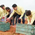 데일리연합 (SNSJTV) 김준 기자 | 심덕섭 고창군수는 8일 공음면 건동리 일원 1만6528㎡(약 5000평) 규모의 고구마 수확 현장을 방문해 생산 농가를 격려하고 애로사항을 청취했다. 이날 방문에는 심덕섭 고창군수, 조민규 고창군의회 군의장 및 군의원, 농업분야 관계 공무원, 고구마 재배농가, 당산마을 주민 등 30여 명이 함께했다. 고창군은 서늘한 해풍과 풍부한 일조량, 게르마늄과 미네랄이 풍부한 황토지대를 기반으로 고구마 재배에 최적의 조건을 갖춘 전북 최대의 명품 꿀고구마 산지다. 현재 약 600여 농가가 총 1400여㏊ 면적에서 고구마를 재배하고 있다. 김헌동 농가는 지난 4월6일부터 정식을 시작해 5월25일까지 약 70만 평 규모에 국내 인기 품종인 ‘호풍미’, ‘베니하루까’를 심었으며, 앞으로 약 5000톤 가량의 고구마를 수확할 계획이다. 수확된 고구마는 쿠팡, 롯데마트 등 전국 대형 유통채널에 납품될 계획이다. 고창 고구마의 우수한 품질은 이미 시장에서 입증되고 있다. 롯데웰푸드는 고창 고구마를 활용한 빈츠·마가렛트·카스타드·빵빠레·찰떡아