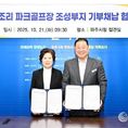 데일리연합 (SNSJTV) 김민제 기자 | 파주시는 지난 21일, 조리 파크골프장 조성 부지 기부채납 협약식을 개최해 파크골프장 조성 사업에 첫발을 내디뎠다. 이날 협약식에는 김경일 파주시장과 토지 기부자인 라보배 씨 등 관계자들이 참석했으며, 조리읍 이장단협의회장, 노인회장, 체육회장, 새마을지도자협의회장, 행복나눔협의체회장 등 지역 주요 단체장이 함께해 지역 발전의 의미를 더했다. 이번 협약은 파주 동부권역 주민의 복리 증진과 생활체육 활성화를 위해 추진된 것으로, 라보배 씨가 11,865㎡ 규모의 부지를 파주시에 무상으로 기부채납함에 따라 조리 파크골프장 조성 사업이 본격화될 예정이다. 파주시는 해당 부지를 활용해 9홀 규모의 산악형 파크골프장을 조성할 계획이며, 2026년 상반기 도시관리계획 결정 및 실시계획인가 절차를 마무리하고, 2026년 하반기 착공 및 2027년 3월 개장을 목표로 사업을 추진하고 있다. 토지 기부자 라보배 씨는 “제가 기부한 토지가 시민들의 건강과 삶의 질을 높이는 공간으로 활용된다는 점이 매우 뜻깊고 기쁘다”라며 “조리 파크골프장이 시민들이 즐겁게 모이고 오래도록