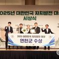 데일리연합 (SNSJTV) 김민제 기자 | 연천군이 (사)한국자치발전연구원이 주관하는 '2025 대한민국 자치발전 대상'에서 기초자치단체 부문 수상자로 선정됐다. 시상식은 지난 23일 서울 용산구 백범김구기념관 컨벤션홀에서 개최됐다. 이번 수상은 연천군이 접경지역이라는 특수한 여건 속에서도 지역 자원을 활용한 독창적인 정책 추진, 주민 참여 확대, 맞춤형 행정 운영을 통해 지방자치 발전에 크게 기여한 공로를 인정받은 결과다. '대한민국 자치발전 대상'은 행정안전부 소관 (사)한국자치발전연구원이 주관하며, 국회의원·지방자치단체·의회·공무원·민간 부문 등에서 지방자치 발전에 기여한 개인과 단체를 선정해 시상한다. 특히 지방자치단체 부문은 단체의 업적을 중심으로 평가해 수여되며, 자치분권과 지역 혁신을 선도한 모범 사례를 널리 알리는 데 목적이 있다. 김덕현 연천군수는 “이번 수상은 연천군민과 함께 만들어낸 값진 성과”라며 “앞으로도 군민의 삶을 풍요롭게 하고, 지역 발전을 선도하는 자치행정을 지속적으로 펼쳐 나가겠다”고 소감을 밝혔다.