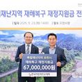 데일리연합 (SNSJTV) 김민제 기자 | 포천시는 지난 23일 행정안전부 산하 지방재정 전문 산하기관인 한국지방재정공제회로부터 특별재난지역 재해복구 재정지원금 6천7백만 원을 전달받았다고 전했다. 시는 매년 화재나 자연재해, 건물 노후로 인한 붕괴와 같은 예기치 못한 상황에서 발생하는 손해를 최소화하고자 한국지방재정공제회를 통해 시 소유 공유재산에 대하여 건물·시설물 재해복구 공제에 가입하고 있다. 한국지방재정공제회는 지역사회 발전과 가입 지자체에 대한 지원사업 강화 및 공제사업 이익 환원의 일환으로 2012년부터 특별재난지역으로 선포된 자치단체에 전년도 건물·시설물 재해복구 공제회비의 30%를 재해복구비용으로 지원하고 있다. 전달식에 참석한 한국지방재정공제회 차병준 옥외광고센터장은 “재정지원금이 포천시의 신속한 피해 복구에 작은 힘이나마 보탬이 되길 바란다”고 말했다. 백영현 포천시장은 “한국지방재정공제회의 지원에 감사하다. 재정지원금은 이번 집중호우로 인해 피해를 본 시설물 등을 복구하는데 도움이 될 것”이라며, “앞으로도 시민의 안전과 시의 공유재산 보호를 위해 최선을 다하겠다”고 말했다.