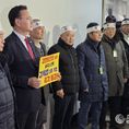 데일리연합 (SNSJTV) 김민제 기자 | 9일부터 국회 천막농성을 이어가고 있는 김진태 강원특별자치도지사가 2월 10일 국회 행정안전위원회 제1법안심사소위원회 회의실 앞에서 ‘투쟁’이라고 적힌 머리띠를 두르고 강원특별자치도법 3차 개정안의 조속한 심사를 강력 촉구했다. - 이날 국회 행안위 법안심사소위에서는 행정통합특별법이 상정돼 심사가 진행 중이며, 해당 법안은 11일까지 논의가 이어질 예정이다. 이 자리에는 유상범 국회의원(홍천・횡성・영월・평창)도 ‘강원도민의 삶을 바꾸는 선택. 강특법 3차 개정 즉각 통과’라고 적힌 피켓을 들고 행정안전위원회 의원들에게 강원특별법 3차 개정안의 조속한 처리를 요청했다. 김 지사는 “행정통합 시도인 5극은 빠른 속도로 국회 심사대에 오른 반면, 정부 부처 협의까지 마친 강원특별법 3차 개정안은 17개월 째 단 한 차례도 법안심사 논의가 이뤄지지 않았다”며 강한 유감을 표했다. 이어 “강원・전북・제주・세종, 이른바 3특과 행정수도 특별법안 역시 균형발전 차원에서 신속히 처리돼야 한다”고 강조했다.