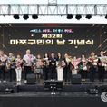 데일리연합 (SNSJTV) 박해리 기자 | 서울 용산구가 지난 17일 ‘제32회 용산구민의 날’을 맞아 용산아트홀 대극장 미르(녹사평대로 150)에서 기념식을 열고, 구민과 함께 화합과 소통의 시간을 가졌다. 이날 행사에는 박희영 용산구청장을 비롯해 권영세 국회의원, 김성철 용산구의회 의장, 시·구의원, 정영철 영동군수(자매도시) 등 내빈과 구민 대표 800여 명이 참석해 자리를 빛냈다. 기념식은 용산해방어린이집 중창단과 용산시니어합창단 중창단의 식전공연으로 시작해 ▲기념 영상 상영 ▲구민대상 시상식 ▲기념사 및 축사 ▲기념 퍼포먼스 순으로 진행됐다. 특히, 기념 영상은 구민과의 소통과 공감을 통해 변화한 용산의 모습들을 담아내 행사 의미를 더했다. 올해 ‘용산구민대상’은 ▲임성우·용문동 새마을금고(선행봉사상) ▲정재범(모범가족상) ▲전쟁기념사업회(문화예술상) ▲김도영(생활체육진흥상) ▲서울특별시 용산구상공회·이태원1동 새마을금고(지역발전상) ▲성심수도회 청년공간 바라(환경보호상) ▲강남준(교육발전상) ▲서울특별시 옥외광고협회 용산구지부(안전상) ▲이기수(특별상) 등 11명(단체 포함)이 수상했다