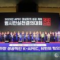 데일리연합 (SNSJTV) 김민제 기자 | 경주시가 2025년 APEC 정상회의 개막을 한 달 앞두고 시민의 힘을 하나로 모아 성공개최 의지를 다졌다. 시는 30일 경주실내체육관에서 ‘2025년 APEC 정상회의 성공개최 범시민실천결의대회’를 성황리에 개최했다고 밝혔다. 이번 행사에는 APEC 범시도민지원협의회(공동회장 박몽룡·이상걸) 소속 회원을 비롯해 유관기관, 시민단체, 자원봉사자 등 경주시민 3천여 명이 참석해 시민과 함께하는 APEC의 진정한 의미를 되새겼다. 특히 주낙영 경주시장을 비롯해 김석기 국회 외교통일위원장, 이동협 경주시의장, 최병준 경북도의회 부의장을 비롯해 시·도의원 전원이 참석해 시민과 함께 손님맞이 실천 결의를 다지고 성공 개최를 향한 열기를 더했다. 행사장 내부에는 시민단체들이 자체 제작한 손님맞이 실천 결의 현수막이 곳곳에 걸려 있어, APEC 성공개최를 향한 시민들의 뜨거운 참여 의지를 생생하게 보여주었다. 본행사에 앞서 참석자들은 ‘APEC 시민 10대 실천과제’를 함께 되새기며, 모든 시민이 APEC의 주인으로서 행동할 때 성숙한 시민의식과 지속가능