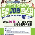 데일리연합 (SNSJTV) 김민제 기자 | 경주시는 오는 15일 외동읍민체육회관에서 ‘2025 경북 드림 JOB 페스타’를 개최한다고 1일 밝혔다. 이번 행사는 고용노동부, 경상북도, 경주시가 주최하고, 경주고용복지플러스센터, 경북경영자총협회, 경주시취업지원센터 등이 주관한다. 현장에서는 기업채용관과 채용지원관을 운영하며 구인‧구직자 간 맞춤형 취업 매칭을 지원한다. 기업채용관은 ㈜디에스시, 덕일오토모티브㈜ 등 지역 우수기업 20여 곳이 참여해 취업 상담과 현장 면접을 진행한다. 채용지원관은 구직자의 경쟁력 강화를 위해 경주고용복지+센터, 중장년 내일센터, 경주여성새로일하기센터 등 유관기관이 컨설팅을 제공한다. 이와 함께 △지문적성 검사 △이력서용 증명사진 무료 촬영 △퍼스널 컬러 진단 △취업타로 △향기 테라피 등 다채로운 부대행사도 마련된다. 주낙영 경주시장은 “이번 채용행사는 청년에게는 사회 진출의 첫걸음을, 중장년에게는 새로운 도약의 기회를 제공하는 자리가 될 것”이라며, “앞으로도 취업 활성화를 위한 다양한 정책을 추진해 일자리가 풍부한 경주를 만들겠다”고 밝혔다.