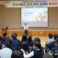 데일리연합 (SNSJTV) 김준 기자 | 오영훈 제주특별자치도지사는 2일 남원중학교(교장 오경석)를 찾아 전교생을 대상으로 특별강연을 열고, “남원과 제주를 넘어 아시아, 나아가 우주까지 여러분의 무대가 돼야 한다”며 청소년들의 꿈과 도전을 격려했다. 이날 강연은 전교생 약 240명이 참석한 가운데 ‘청소년들과 함께 제주 미래를 꿈꾸다’를 주제로 진행됐다. 이번 특강은 2024년 표선고, 한림공고, 한국국제학교(KIS), 2025년 제주중앙고, 중문고에 이어 여섯 번째로 마련된 자리로, 앞으로도 도내 중·고교 학생들과의 만남을 꾸준히 이어갈 계획이다. 오 지사는 제주가 추진 중인 신산업에 대해 구체적으로 소개했다. 한화우주센터가 10월 준공을 앞두고 있고, 한림공고가 협약형 특성화고인 '한림항공우주고등학교'로 전환되며, 졸업예정자 5명이 한화시스템에 취직했다는 사례도 전했다. 기후위기에 대응하는 제주의 탄소중립 정책도 상세히 설명했다. “정부는 2050년까지 탄소중립을 목표로 하지만, 제주는 2035년으로 15년 앞당길 계획”이라며 구체적인 실행 방안을 제시했다. 청소년을 위한 제주도의 정책 성과