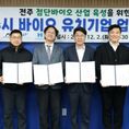데일리연합 (SNSJTV) 김민제 기자 | 첨단바이오 분야 기술력을 보유한 국내 기업들이 전주에 둥지를 틀면서 바이오산업을 새로운 성장동력으로 육성해 온 전주시의 계획에 힘이 실리게 됐다. 전주시는 2일 전주시청 3층 소회의실에서 파마로보틱스와 뉴아인, 하이퍼틱스 등 첨단바이오 분야 기술력을 보유한 3개 기업과 공동 성장을 위한 업무협약을 체결했다. 이날 협약식에는 우범기 전주시장과 세 기업의 대표 등 관계자 8명이 참석했으며, 이들은 기업 애로 해소와 산업 생태계 확장을 위한 상생 협력에 나서기로 뜻을 모았다. 이 자리에서 시는 현재 추진 중인 연구개발 인프라 조성 계획과 바이오산업 육성 방향을 설명하고, 기업들로부터 이전 계획과 기술개발 현황, 필요한 지원 사항 등을 청취했다. 특히 이번에 협약을 맺은 기업들은 모두 첨단 의료기기와 전자약 분야에서 경쟁력을 인정받은 기술 기반 기업들로 지역 바이오산업 성장을 위한 동력이 될 것으로 기대를 모은다. 구체적으로 파마로보틱스는 AI 기반 주사제 자동조제 로봇을 개발하며 TIPS와 초격차 1000+ 등에 선정된 성장기업으로, 지난 10월