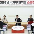데일리연합 (SNSJTV) 김민제 기자 | 이상일 시장은 9일 수지구청 대회의실에서 오전·오후로 나눠 상현1·2·3동과 신봉·성복동 주민들을 대상으로 권역별 소통간담회를 열고, 주민 대표 80여 명과 지역 현안에 대해 의견을 나눴다. 이 시장은 “매년 현장에서 시민들과 직접 만나고 있는데, 지난해에는 구별로 간담회를 진행했고 올해는 생활권 중심으로 묶어 소통하고 있다”며 “이웃 동네에서 어떤 일이 있었는지 함께 듣고 공감할 수 있어 좋다는 반응이 많다”고 말했다. 오전 간담회에서 상현1‧2‧3동 주민들은 ▲상현동 일원 전신주·전선 지중화 ▲겨울철 통학로 안전 강화 ▲상현공원 등 노후 공원 정비 ▲상현3동 광교 스포츠센터 복합시설 조기 건립 ▲소규모 공원·보행시설 개선 ▲공원 내 편의시설 확충 등을 건의했다. 상현동 주민은 “상현 아이파크 5단지부터 상현교차로로 이어지는 구간은 학생들의 통학로이자 주민 통행이 많은 곳인데, 전선이 늘어져 있어 안전사고 우려가 크다”며 전주 지중화를 요청했다. 시 관계자는 “전주 지중화사업은 매년 6~7월 한전에서 사업 신청 공문이 내려오면 신청 절차를 진행하게 된다