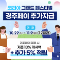 데일리연합 (SNSJTV) 김재욱 기자 | 경주시가 29일부터 다음달 9일까지 열리는 '코리아 그랜드 페스티벌' 기간 지역화폐 '경주페이'이용자에게 기존 13% 캐시백에 더해 5%를 추가 지급한다고 24일 밝혔다. 이번 조치는 국비 지원에 따라 추진되는 것으로, 행사 기간 지역 내 소비를 촉진하고 지역 경제에 활력을 불어넣기 위한 취지다. '코리아 그랜드 페스티벌'은 전국민이 함께 즐기며 소비를 활성화하는 대규모 할인 행사로, 침체된 내수경기를 회복하고 지역 상권을 지원하기 위한 행사다. 경주페이 이용자는 행사 기간 총 18%의 캐시백 혜택을 받을 수 있다. 예를 들어 1만 원 결제 시 기존 캐시백 1,300원 외에 500원이 추가 적립된다. 경주시는 이번 행사를 통해 경주페이 이용을 확대하고 지역 상권의 매출 회복에 도움이 될 것으로 기대하고 있다. 주낙영 경주시장은 "코리아 그랜드 페스티벌은 전 국민이 함께 소비를 활성화하고 지역 경제에 활력을 불어넣는 뜻깊은 행사"라며 "경주페이를 통한 지역 소비 확대를 계기로 지역경제의 지속 가능한 성장을 이끌겠다"고 말했다.
