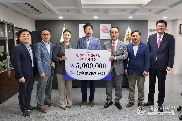 데일리연합 (아이타임즈M 월간한국뉴스신문) 기자 | 천안시자동차전문정비협동조합(이사장 권진우)이 21일 지역인재 육성과 도움이 필요한 학생을 위해 장학금 500만 원을 천안사랑장학재단(이사장 박상돈)에 기탁했다.