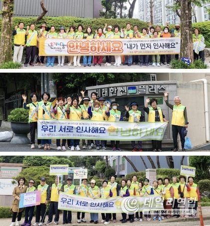 데일리연합 (아이타임즈M 월간한국뉴스신문) 기자 | 대전 대덕구는 (사)대덕구자원봉사센터와 보람 아파트 봉사단, 선비 1단지 아파트 봉사단, 한신휴플러스 아파트봉사단이 21일 사부작사부작 운동의 일환으로 인사하기 캠페인 ‘내가 먼저 인사해요’를 진행했다고 밝혔다.