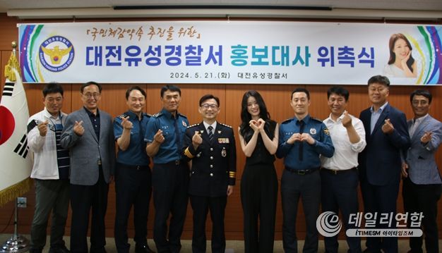 데일리연합 (아이타임즈M 월간한국뉴스신문) 기자 | 대전유성경찰서는 5.21. 국민체감 약속 추진 등 범죄 예방 홍보를 위해 밝은 이미지의 트로트 가수 한여름을 홍보대사로 위촉했다.