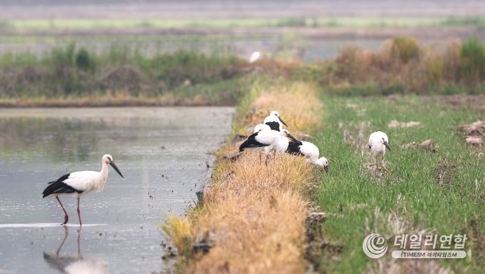 새끼 황새들은 둥지에서 날아올라 서산버드랜드 주변 농경지에서 다양한 모습으로 관찰돼, 방문객들의 관심을 사로잡고 있다.