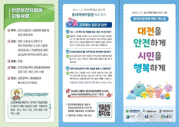 데일리연합 (아이타임즈M 월간한국뉴스신문) 기자 | 대전시는 중대산업재해 예방 홍보 강화에 나선다.