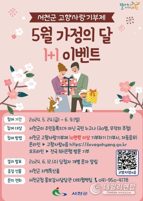 데일리연합 (아이타임즈M 월간한국뉴스신문) 기자 | 서천군이 6월 9일까지 고향사랑기부제 특별 이벤트를 진행한다.