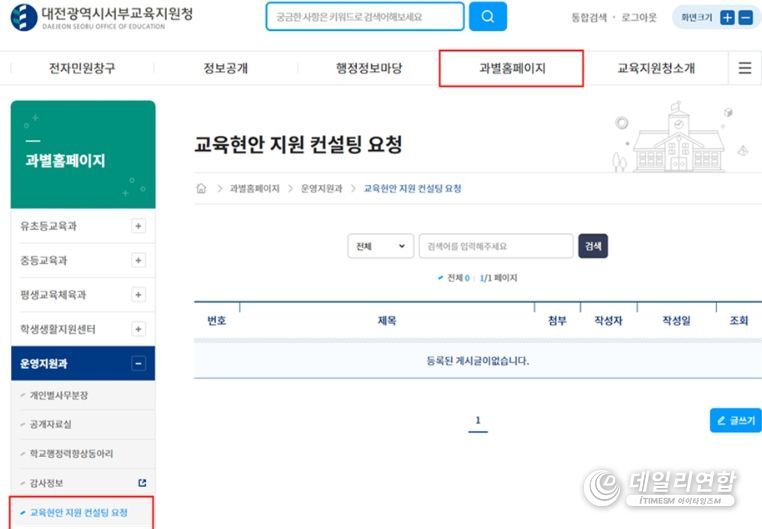 특히, 대전서부교육지원청 누리집 내에‘교육현안 지원 컨설팅 요청’ 게시판을 신설함으로써 공문 제출 절차 등을 생략하여 신청의 접근성을 높이고 교육현장의 업무경감을 지원한다.